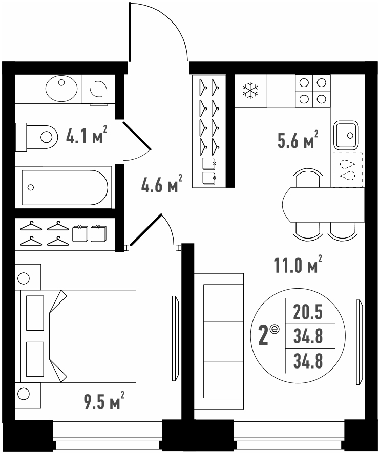 Общая площадь 34.8 м²