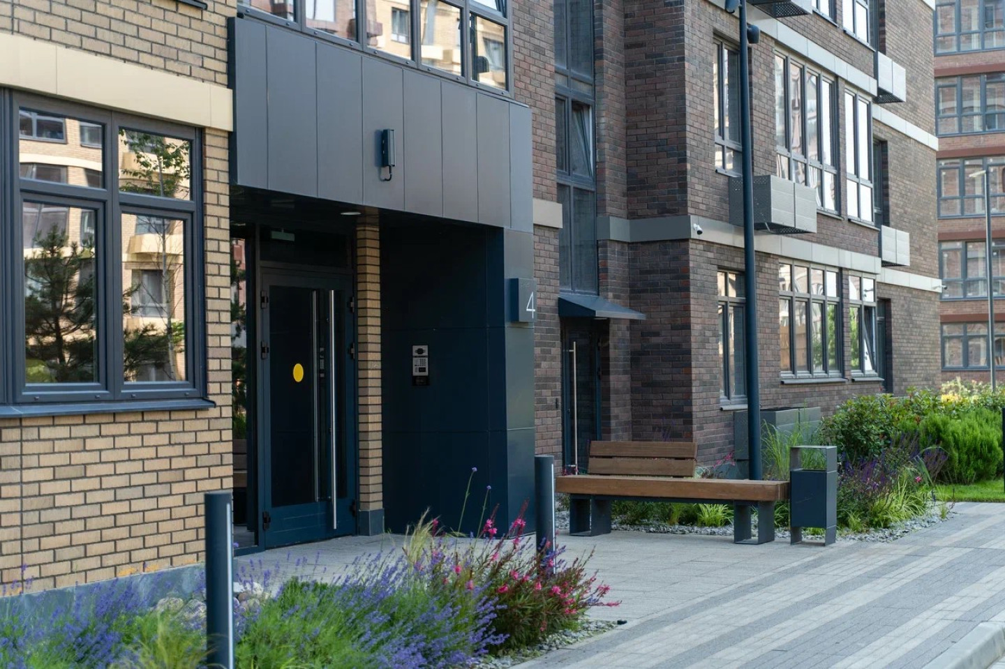 Пространство двора выполнено на одном уровне, и входные группы мы тоже сделали на уровне тротуаров. Это один из элементов комфортной среды, который оценили все жильцы: от мам с детьми до пожилых людей. Внутри подъезды выглядят красиво и современно, благодаря дизайнерской отделке, стильной навигации и подсветке. На первых этажах есть колясочные. Сквозные входы и выходы связывают улицу и двор, вам не придется долго обходить дом, чтобы выйти за пределы ЖК.