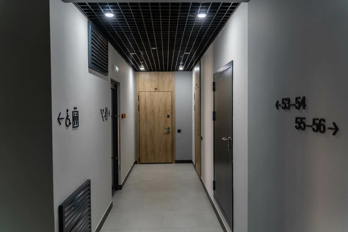 Стеклянные двери создают внутри подъездов безопасную атмосферу и добавляют света. Доступ посторонним людям ограничивают видеодомофоны и контроль доступа по биометрическим данным. Чтобы в квартирах было тихо, мы установили бесшумные скоростные лифты турецкого производителя и отделили лифтовые группы от жилой зоны.