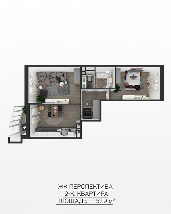 2. Двухкомнатная квартира в литере 2.5 ЖК Перспектива, площадь которой — 57,9 кв. м.