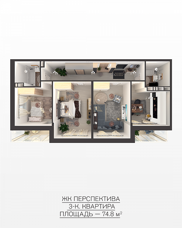 1. Уютная, но просторная «трешка» в литере 3.1 ЖК Перспектива площадью 74,8 кв. м.
