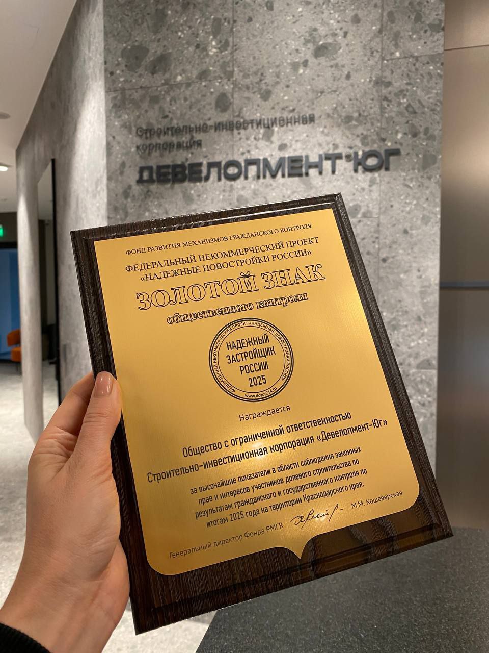 Девелопмент-Юг в 4-й раз подряд признали Надежным застройщиком России