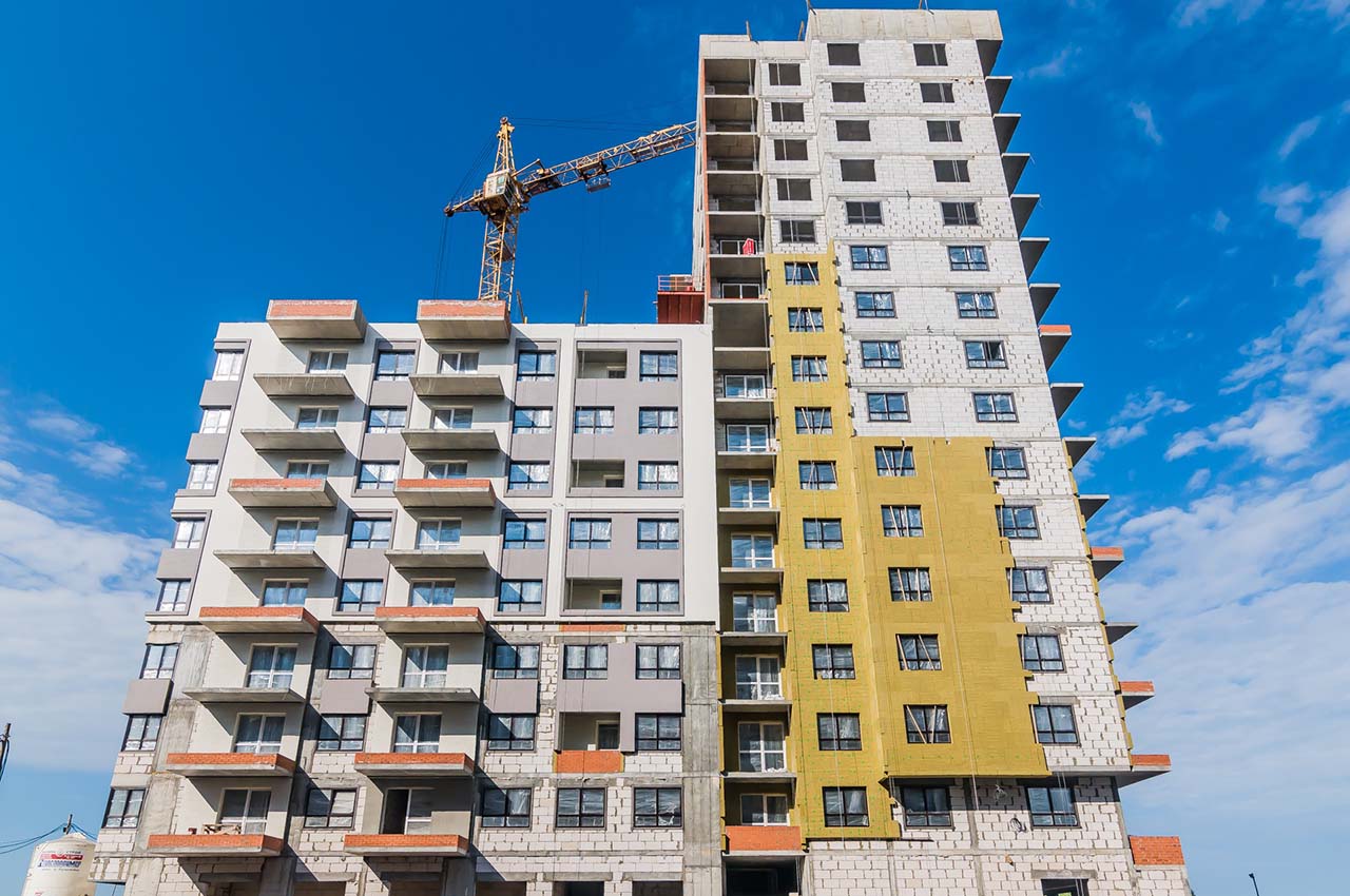 - Ведем кладку стен и перегородок 14–16 этажей