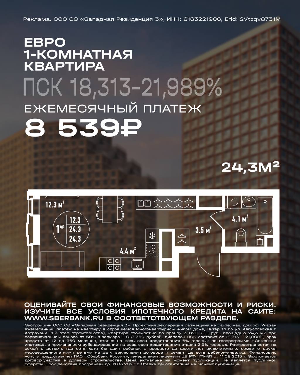 Реклама. ООО СЗ «Западная Резиденция 3», ИНН: 6163221906, Erid: 2Vtzqv8731M