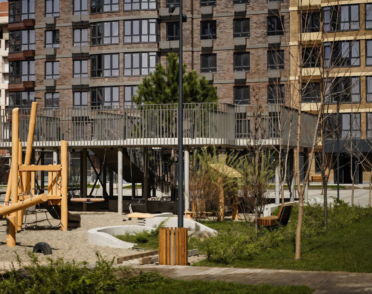 Зоны игр и прогулок удалены от автомобилей — меньше шума, больше свежего воздуха и свободы для передвижения.