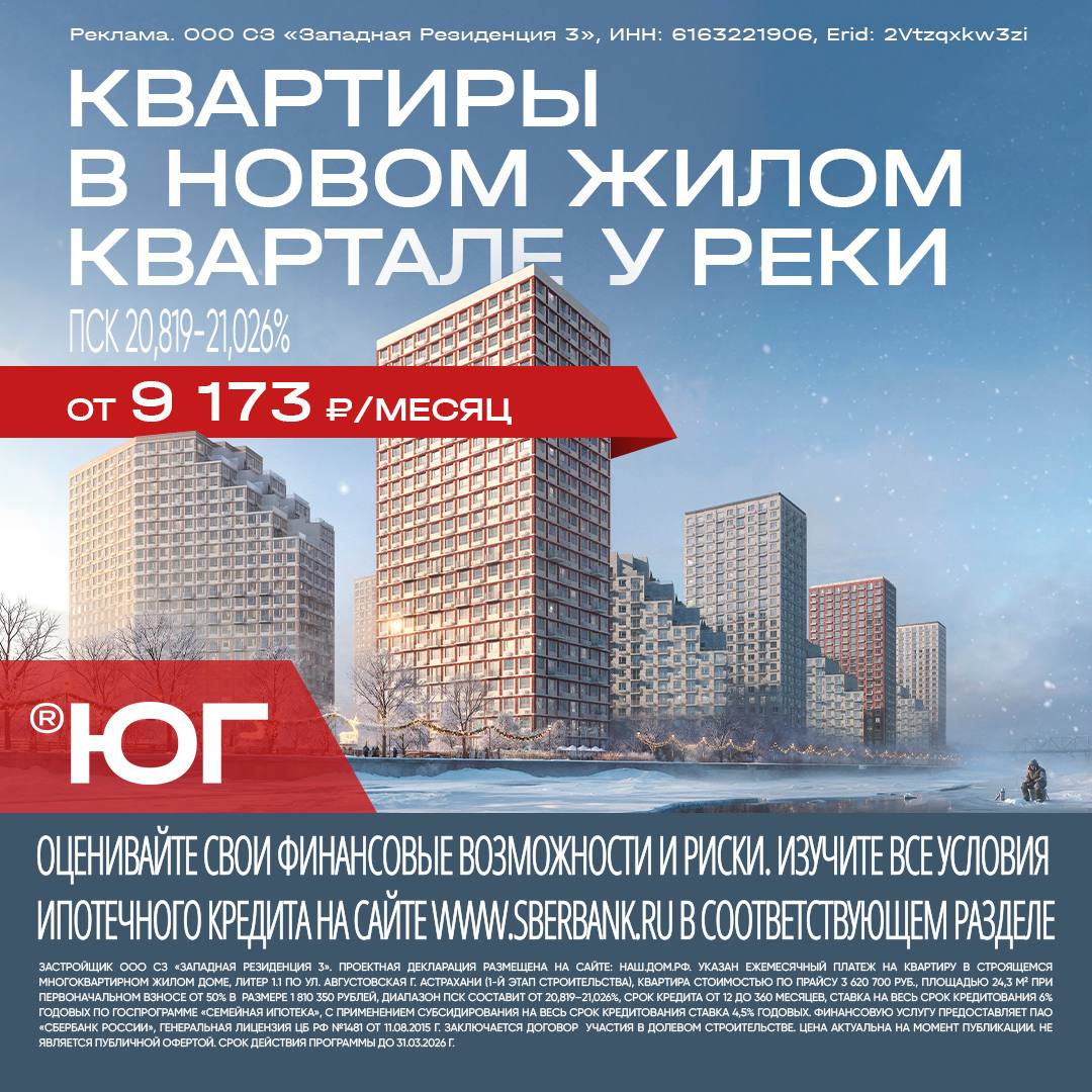 Реклама. ООО СЗ «Западная Резиденция 3», ИНН: 6163221906, Erid: 2Vtzqxkw3zi