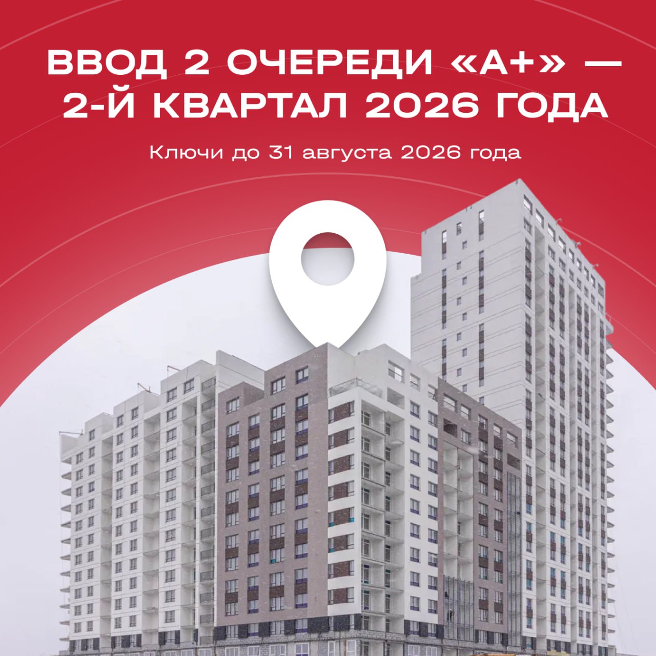 Друзья, важная новость! Ввод второй очереди ЖК «А+» переносится с 1-го на 2-й квартал 2026 года.