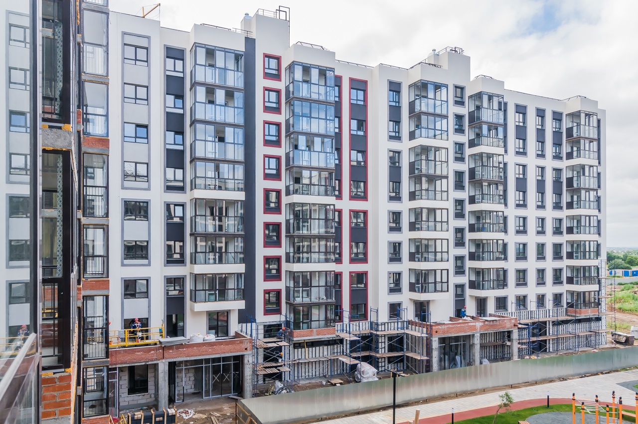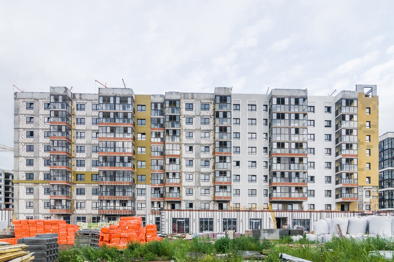Продолжаем работы по устройству навесного вентилируемого и штукатурного фасадов