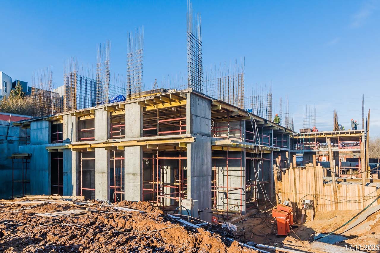 - Продолжаем работы по устройству вертикальных конструкций 1 этажа — 80%