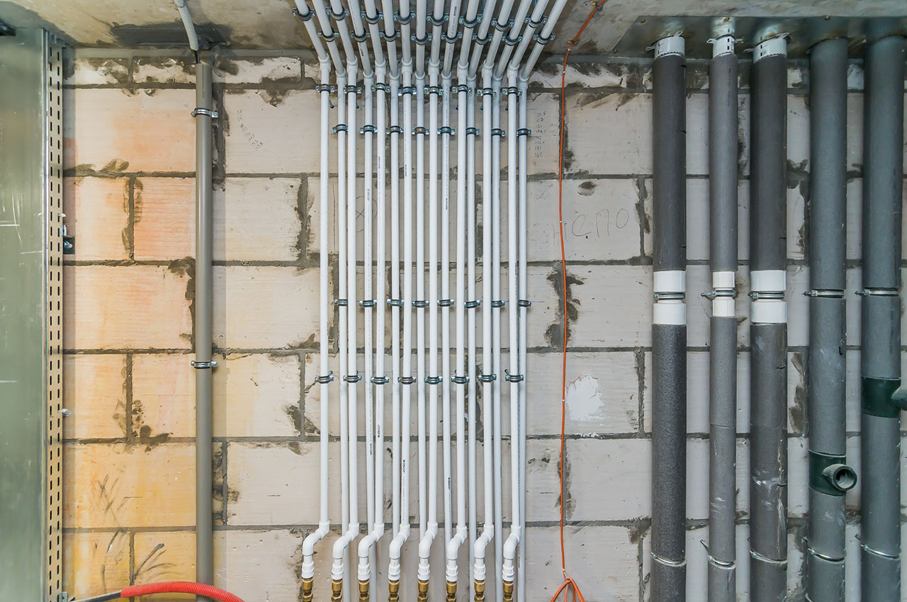 - Ведем монтаж разводки горячего и холодного водоснабжения по санузлам