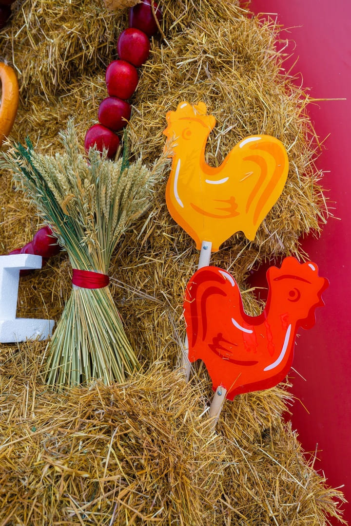 - Фотозона со стогом сена — будто кадр из русской сказки.
