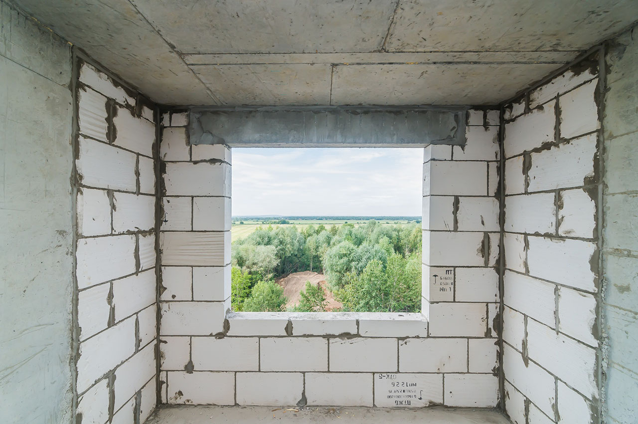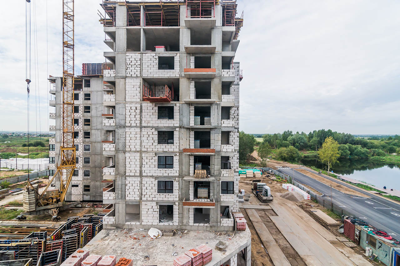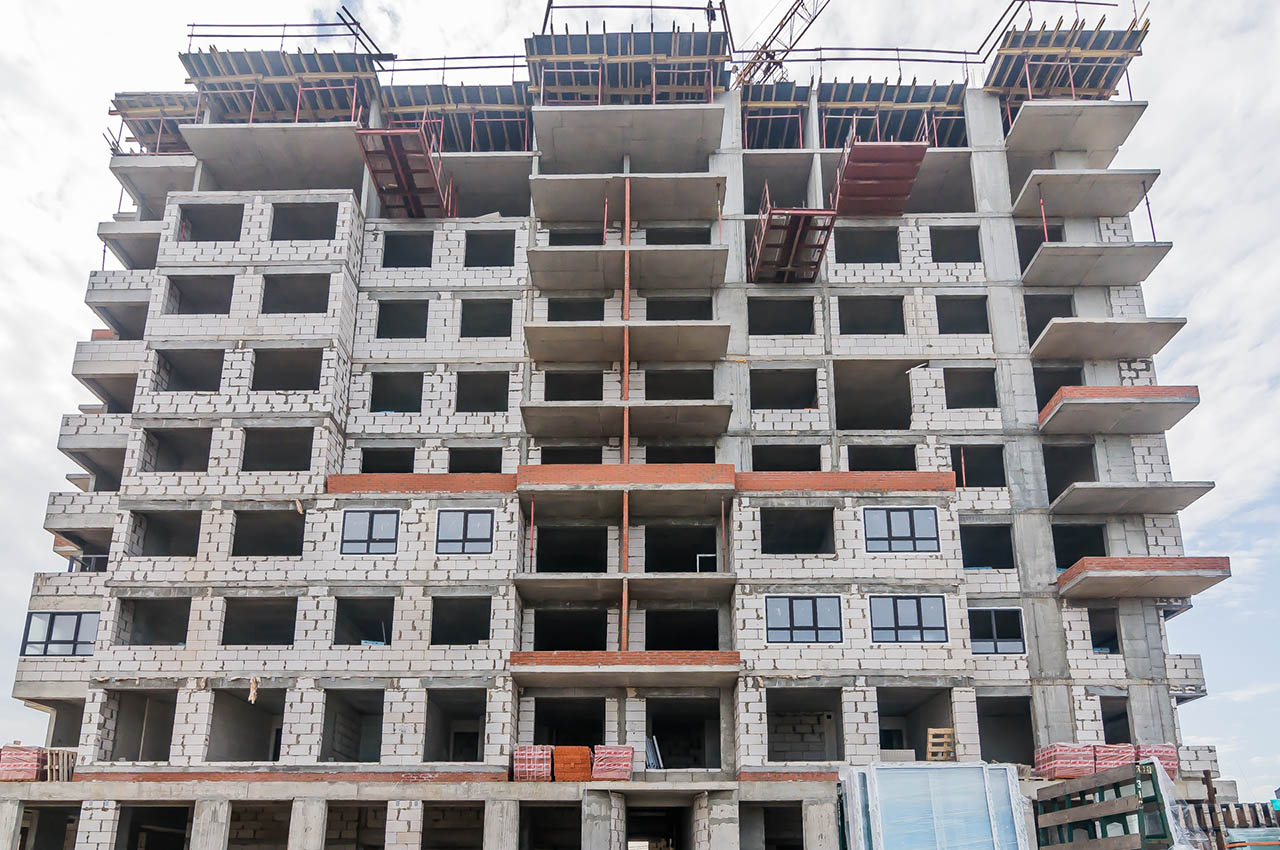 - Ведем работы по кладке газобетонных стен 7, 8 этажей