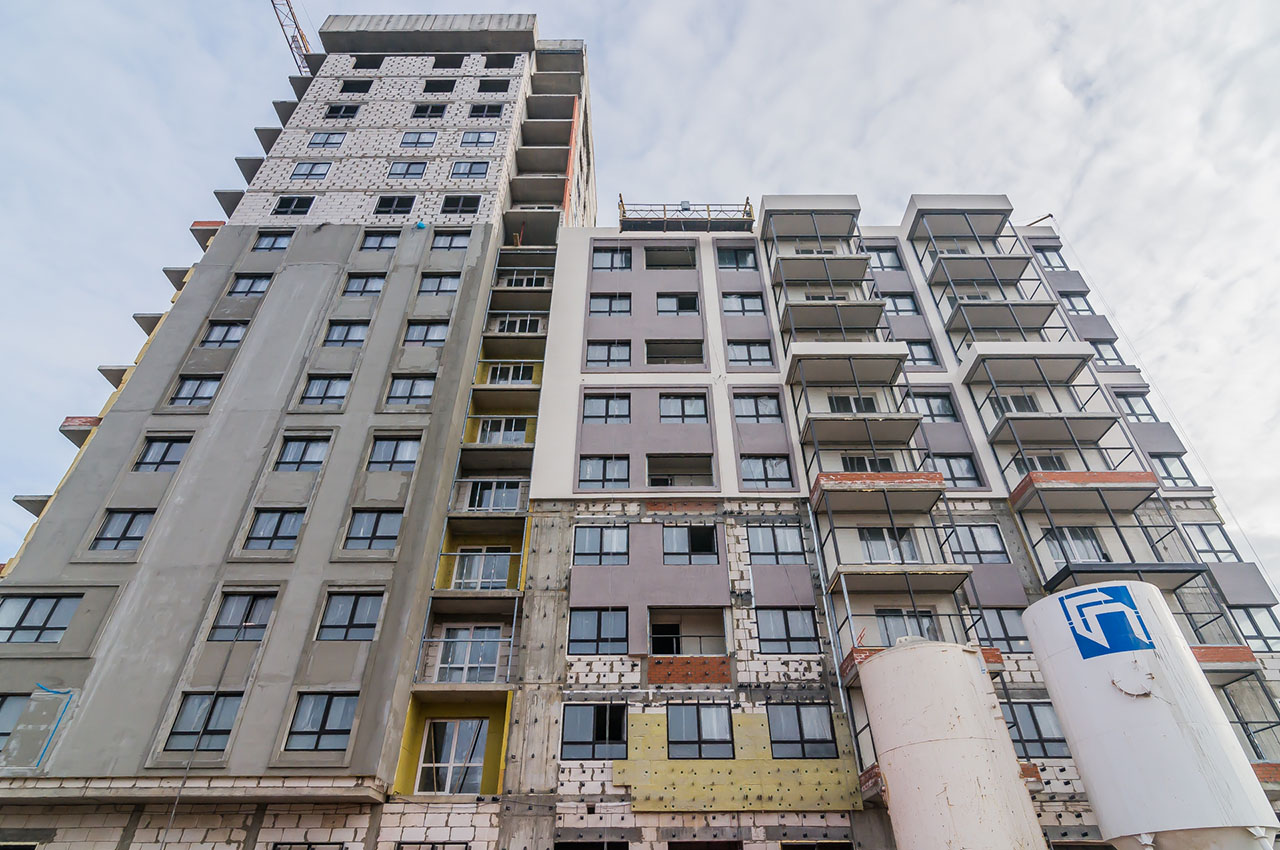 - Ведем работы по кладке газобетонных стен 14–15 этажей