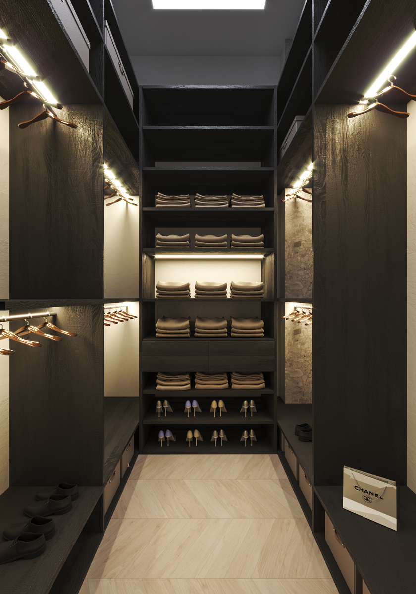 Прозрачные панели в кухне или открытые полки в прихожей — дело вкуса, конечно. Но чем больше вещей будет видно, тем «тяжелее» будет выглядеть интерьер. Каждый предмет, каждая коробка станет частью цветового решения. Поэтому постарайтесь закрыть такие зоны.