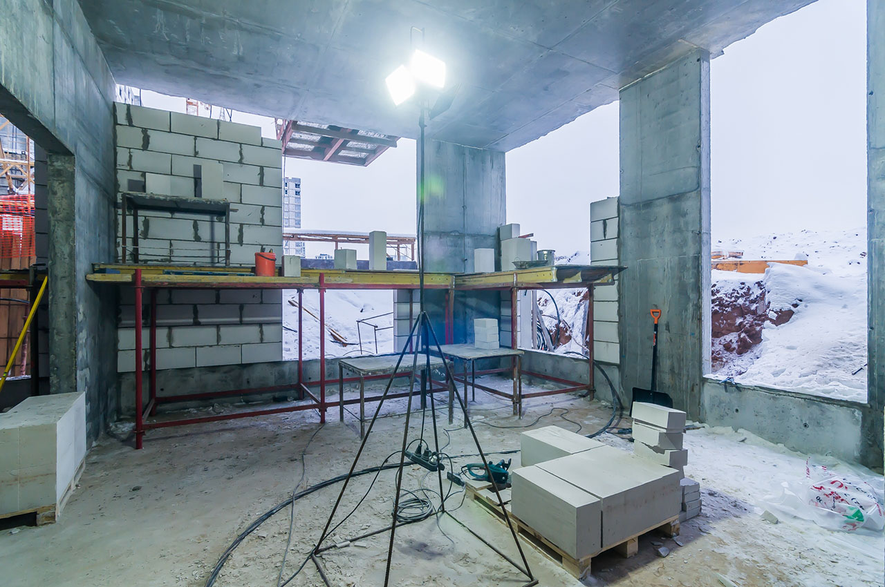 - Завершили работы по устройству внутренних и наружных стен — 100%