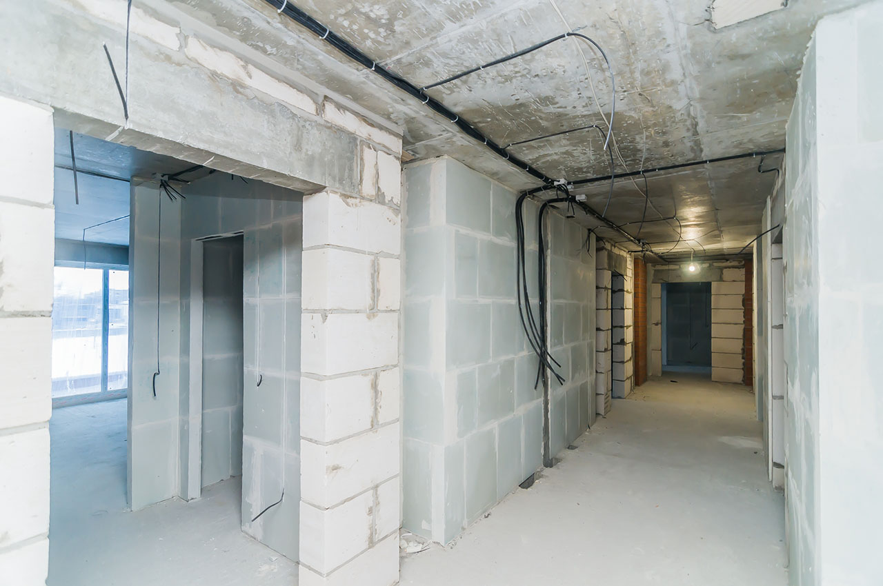 - Выполнили устройство вертикальных конструкций тех. этажа