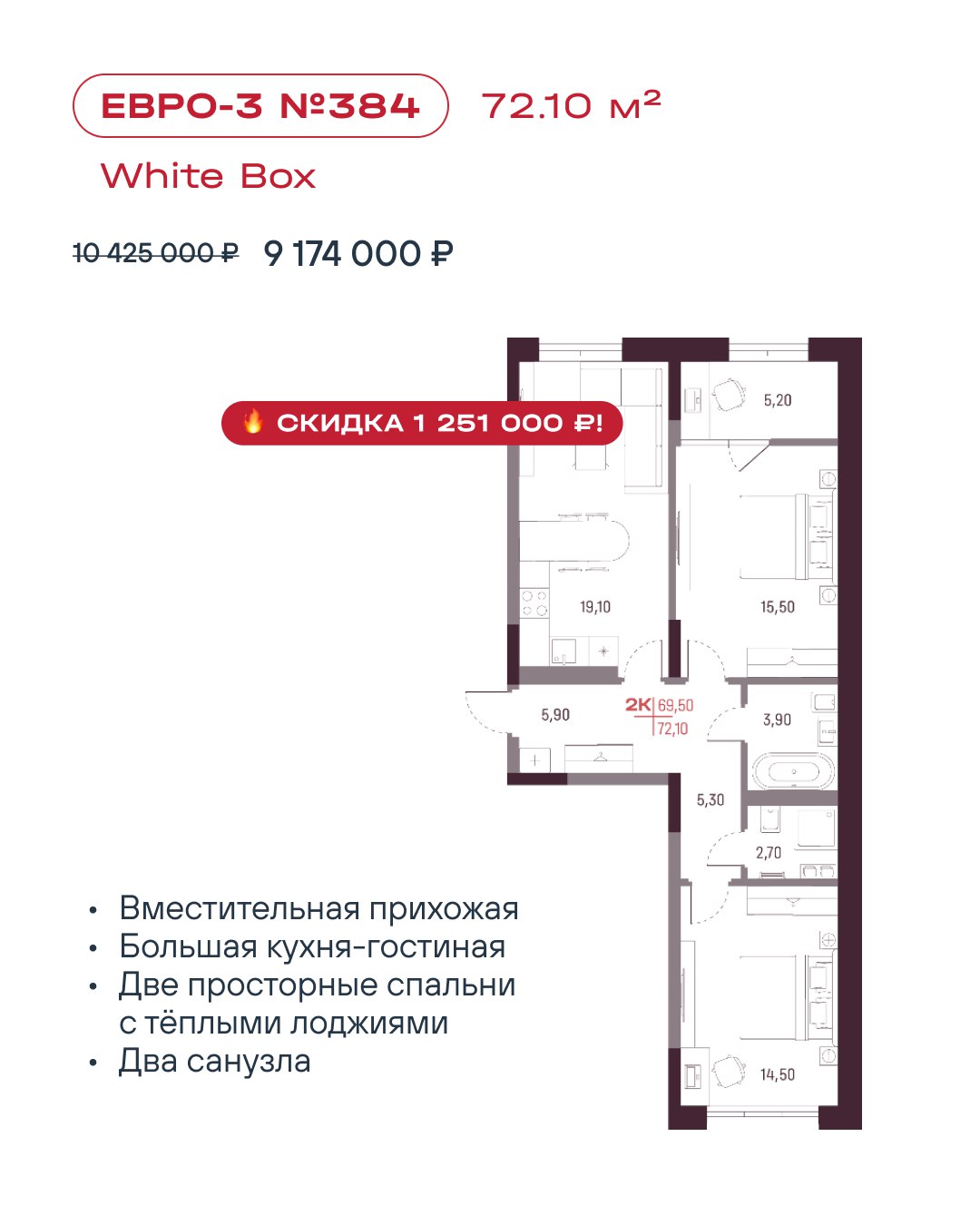 - Евротрёшка 72.10 м² со скидкой 1 251 000 ₽.