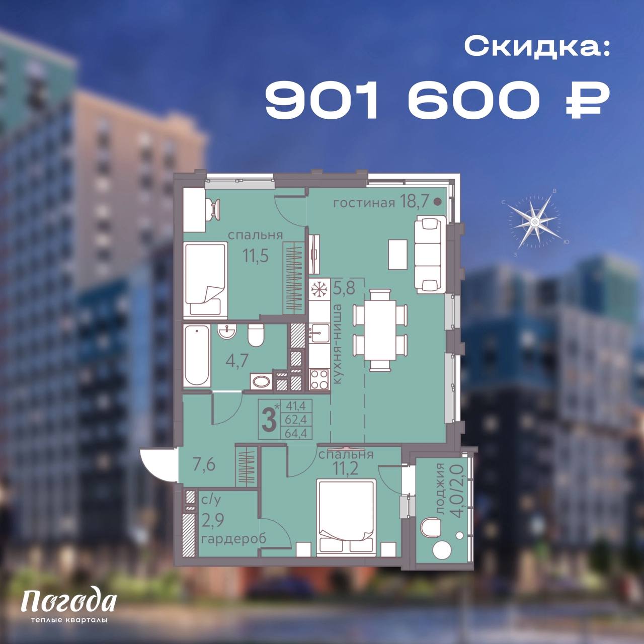 Квартира вашей мечты в экогороде «Погода»!