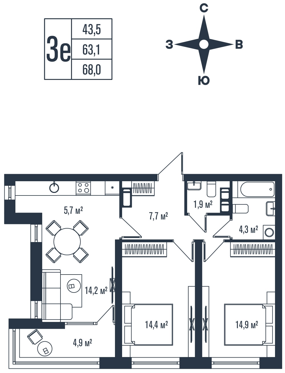 Общая площадь 68 м²