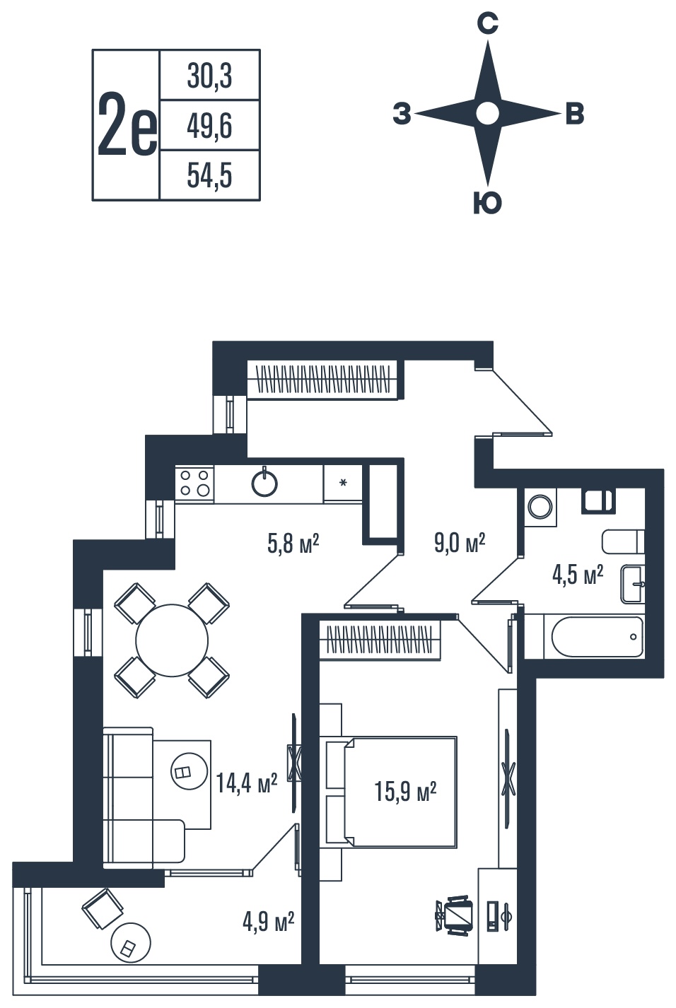 Общая площадь 72.7 м²