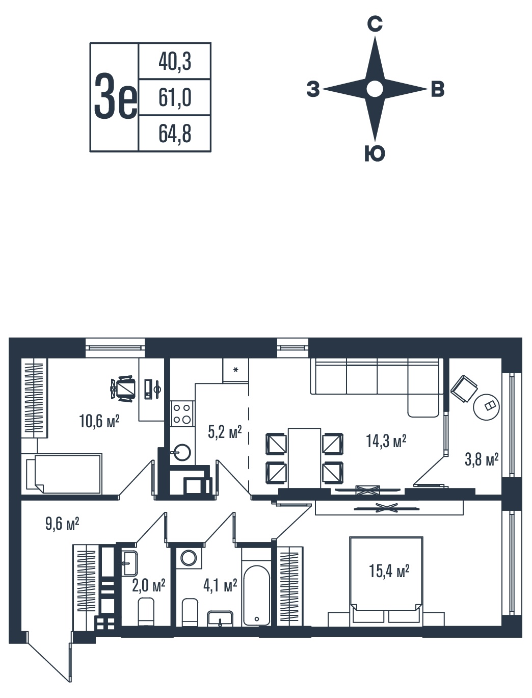 Общая площадь 64.8 м²