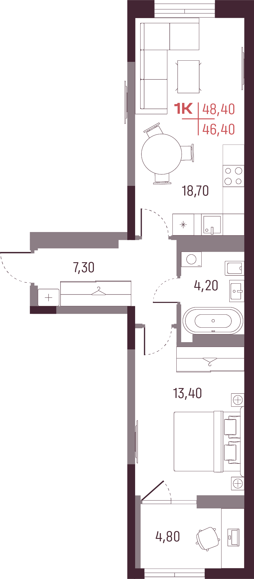 Общая площадь 46 м²