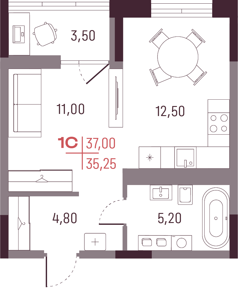 Общая площадь 35.25 м²