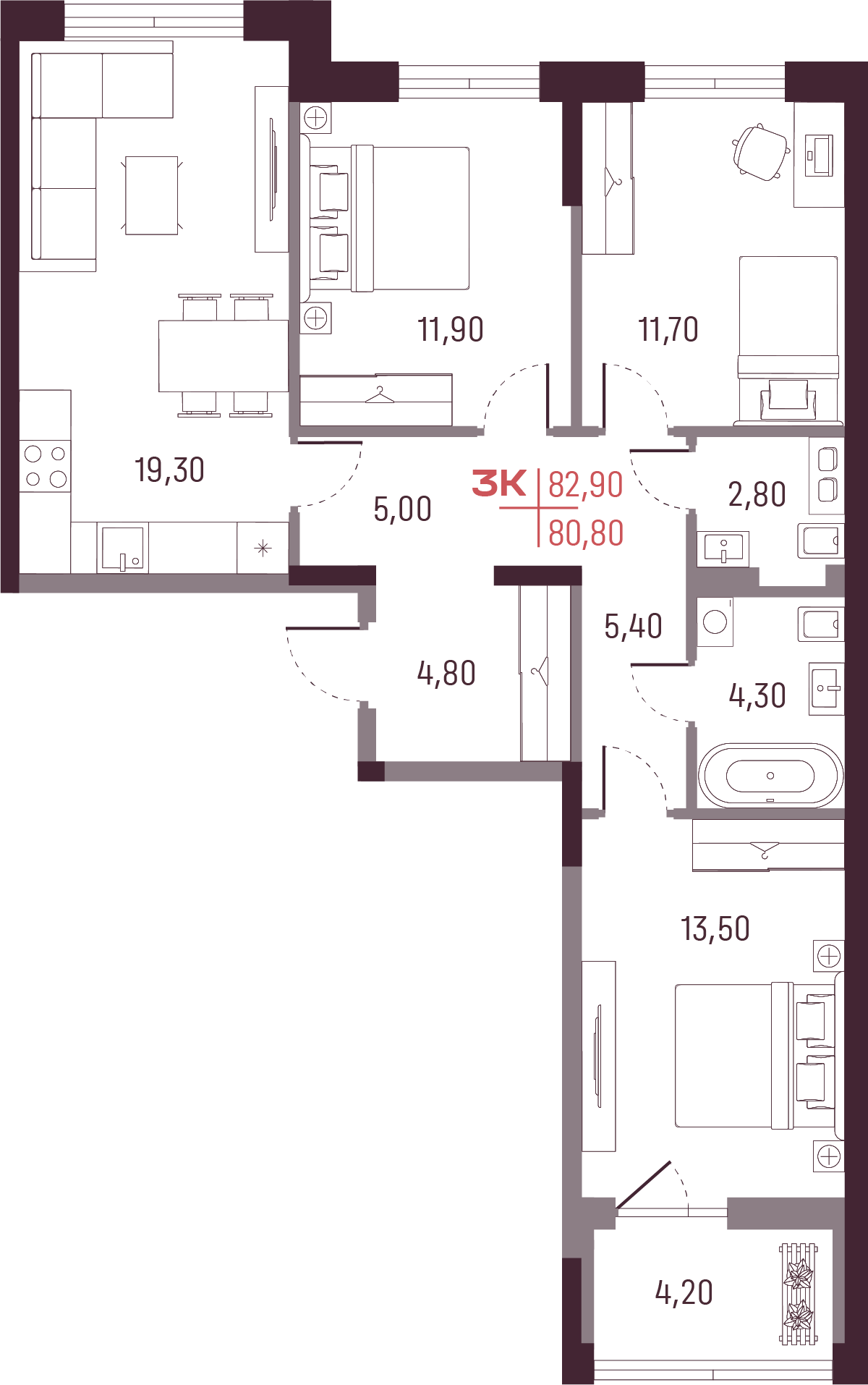 Общая площадь 80.8 м²