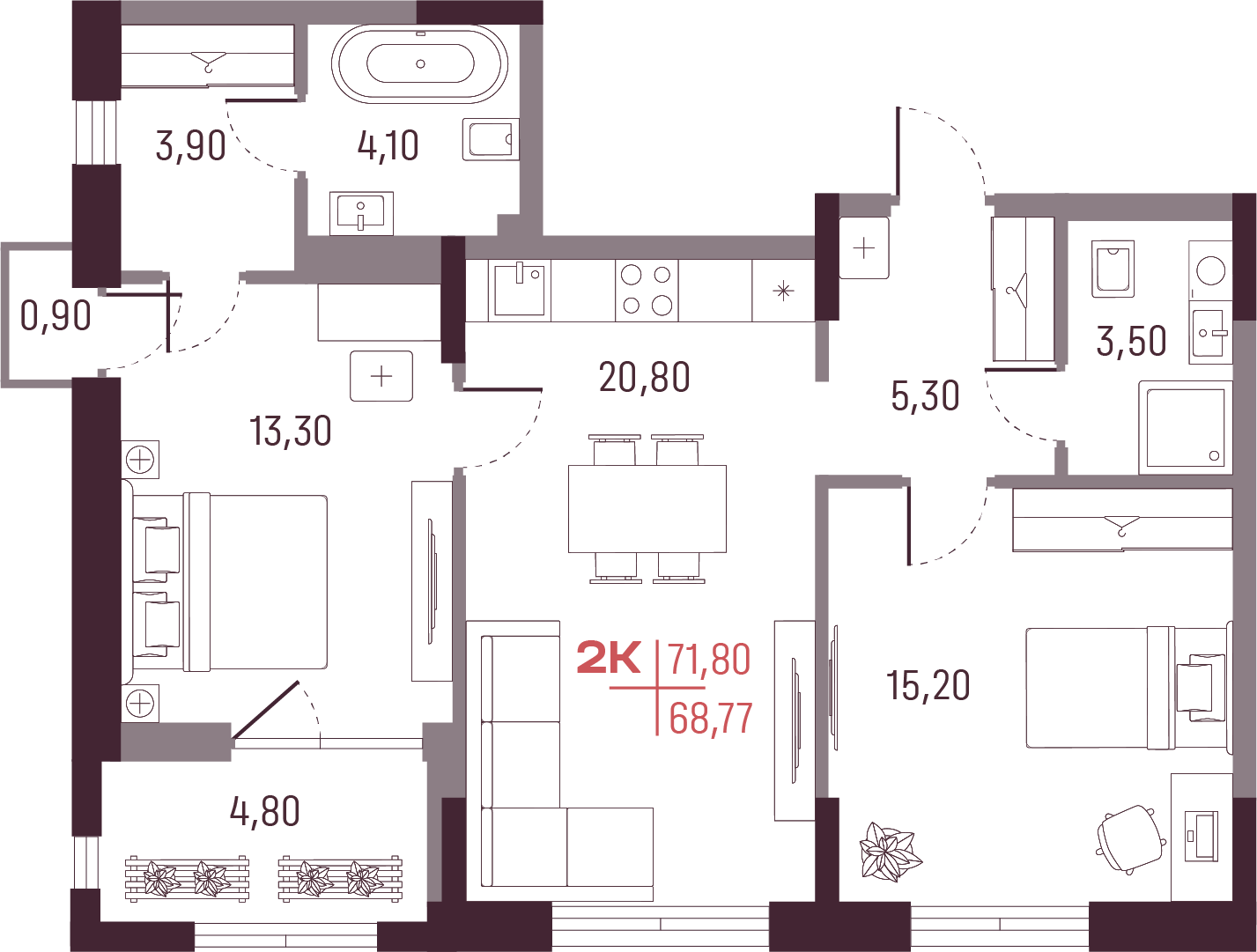 Общая площадь 68.77 м²