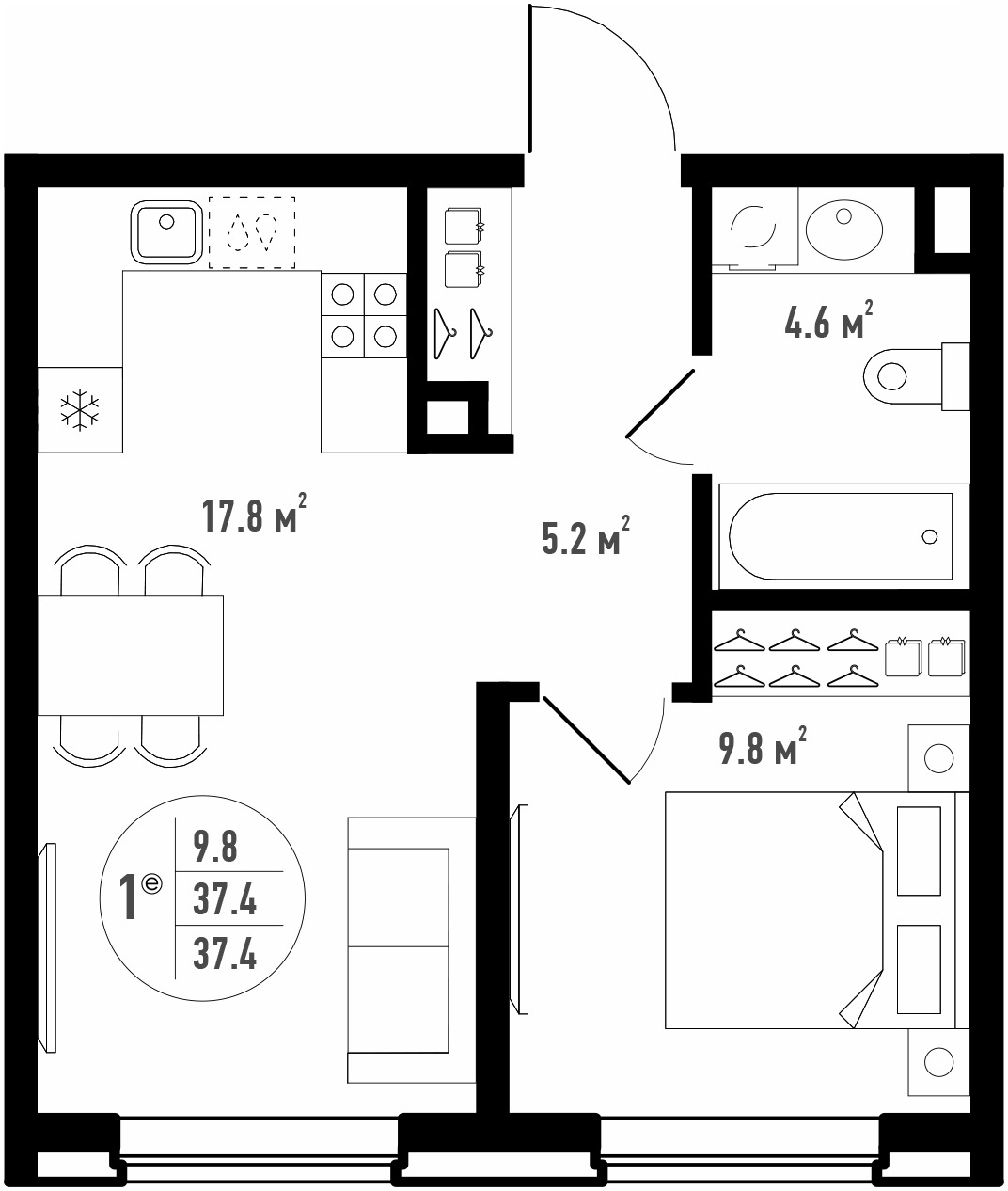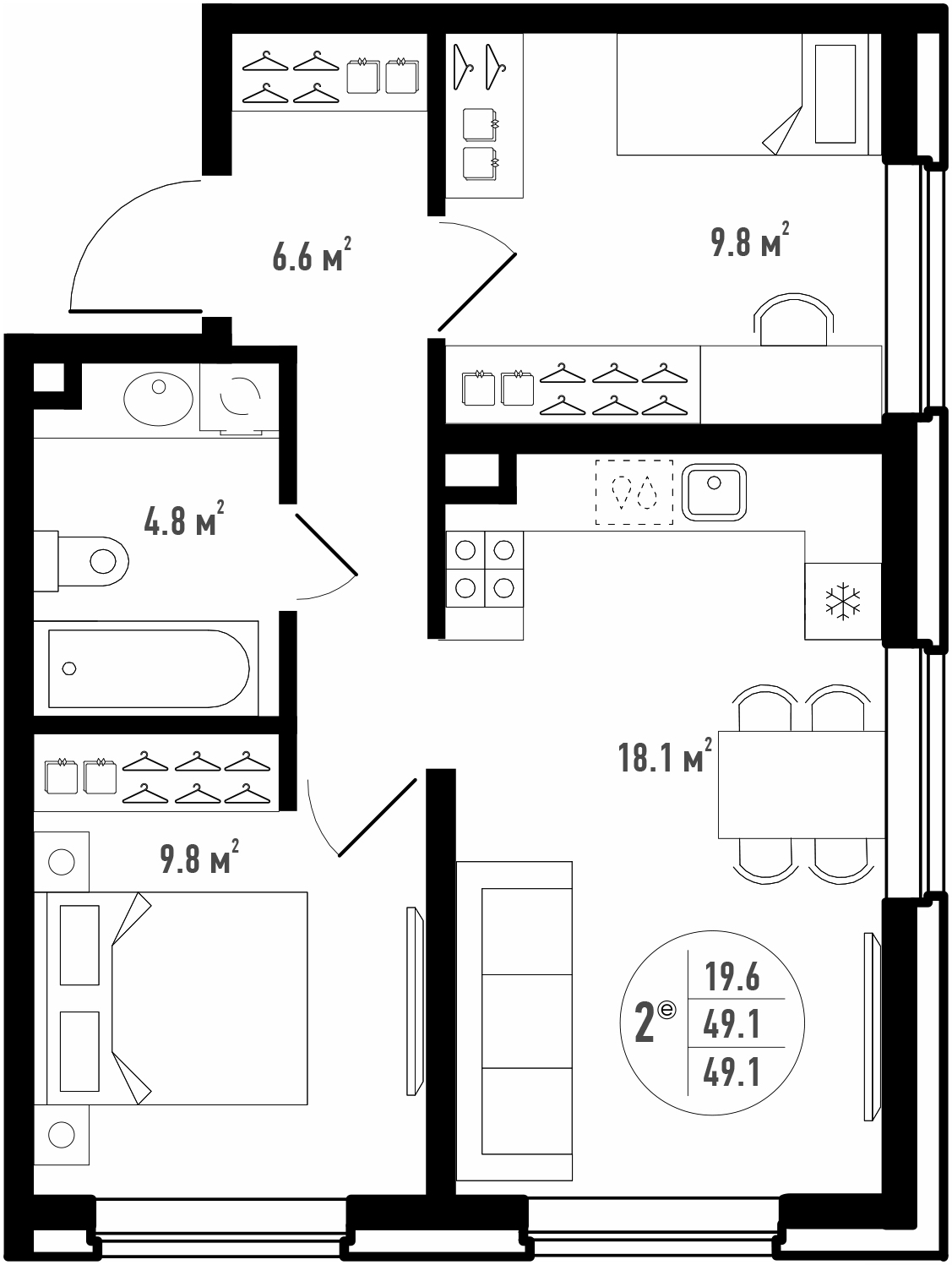 Общая площадь 48.5 м²