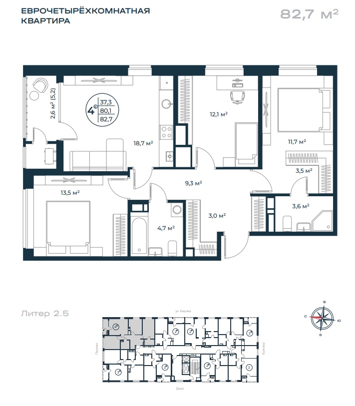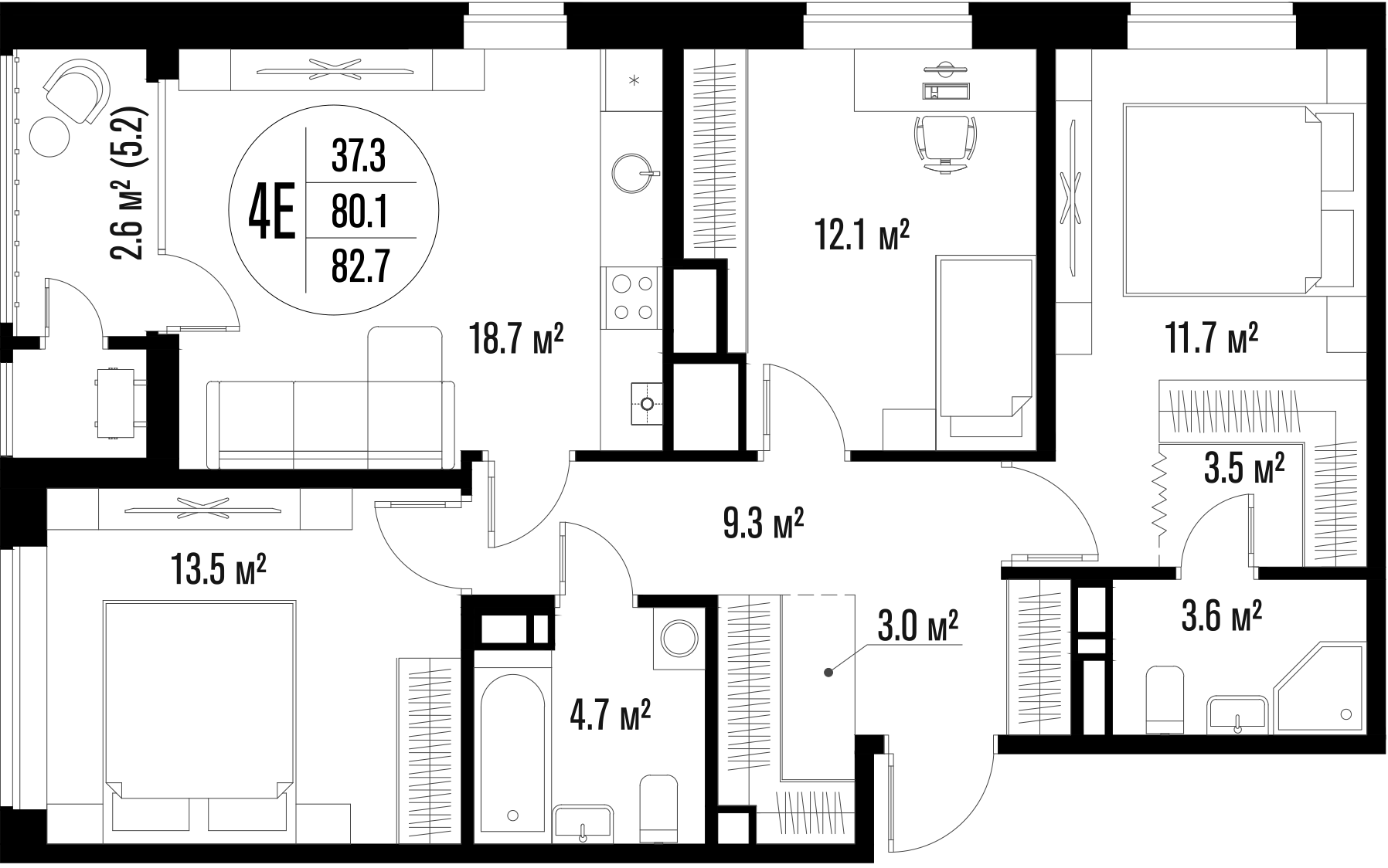 Общая площадь 82.7 м²