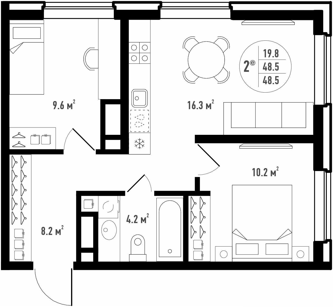 Общая площадь 51.6 м²