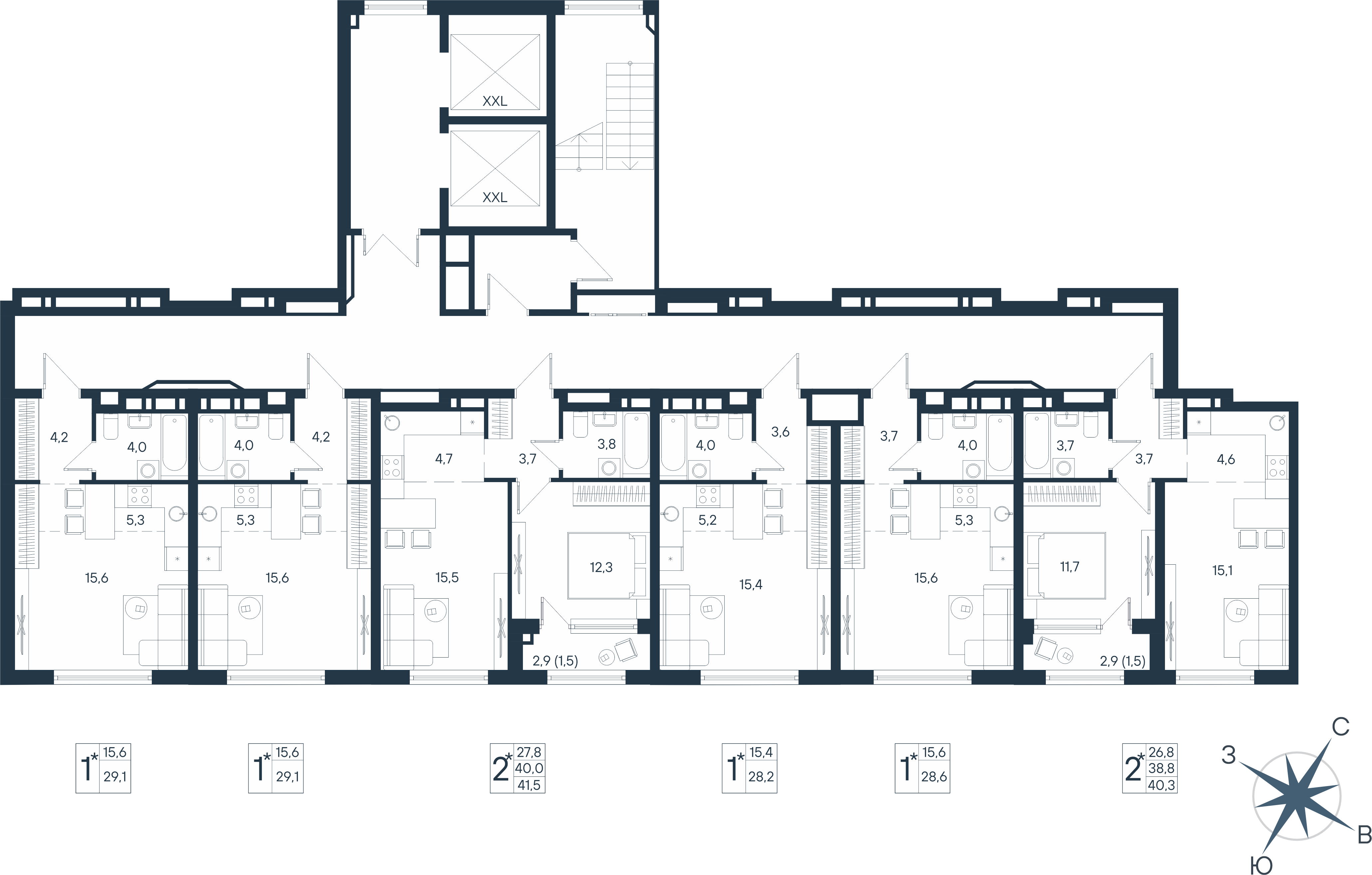 15.4 м²