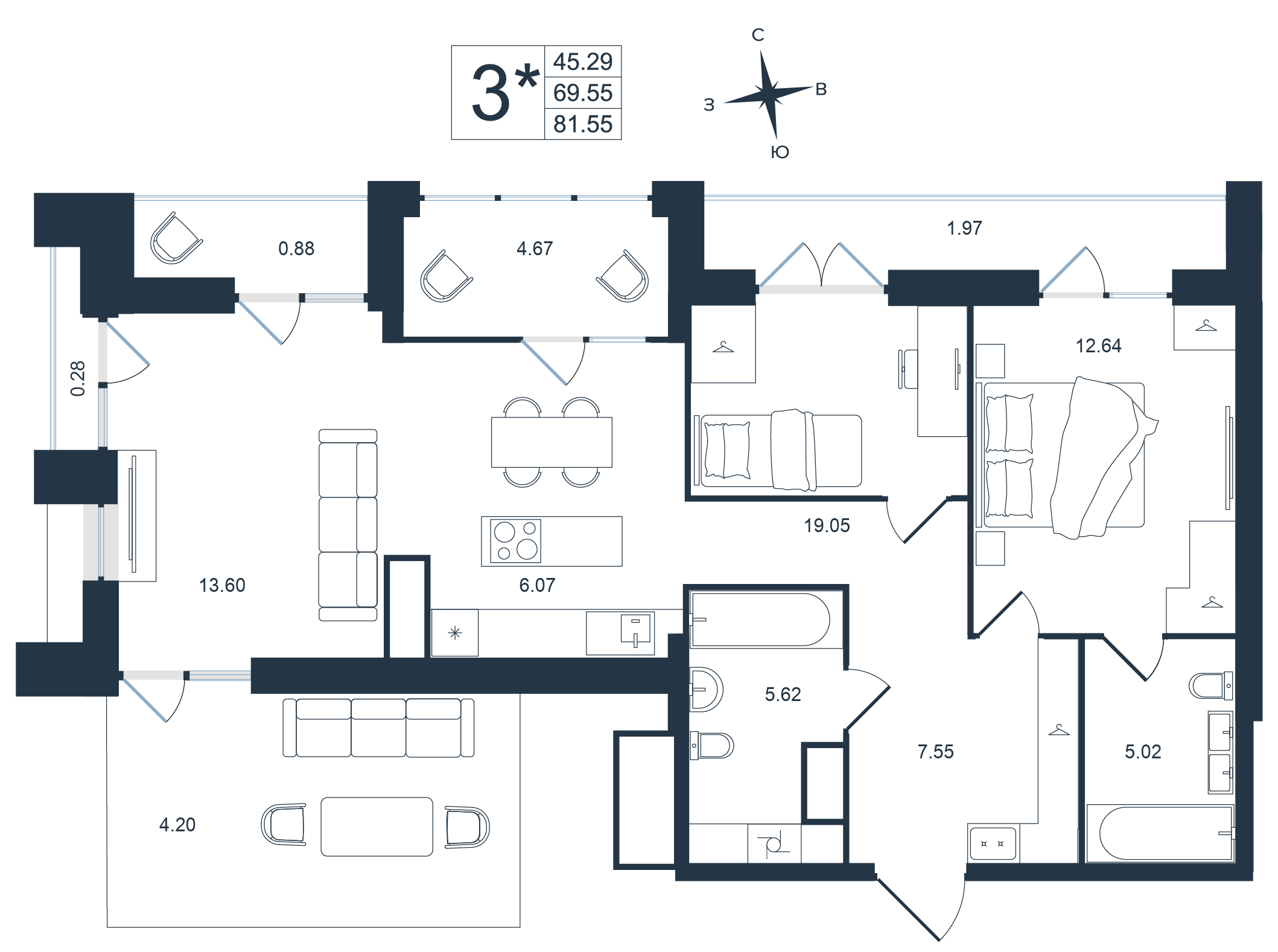 Общая площадь 81.55 м²