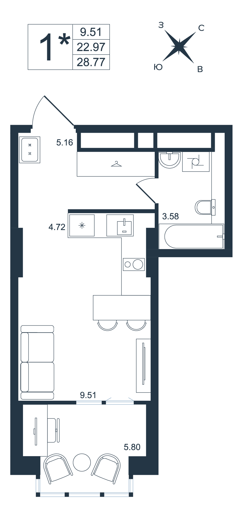 Общая площадь 96.13 м²