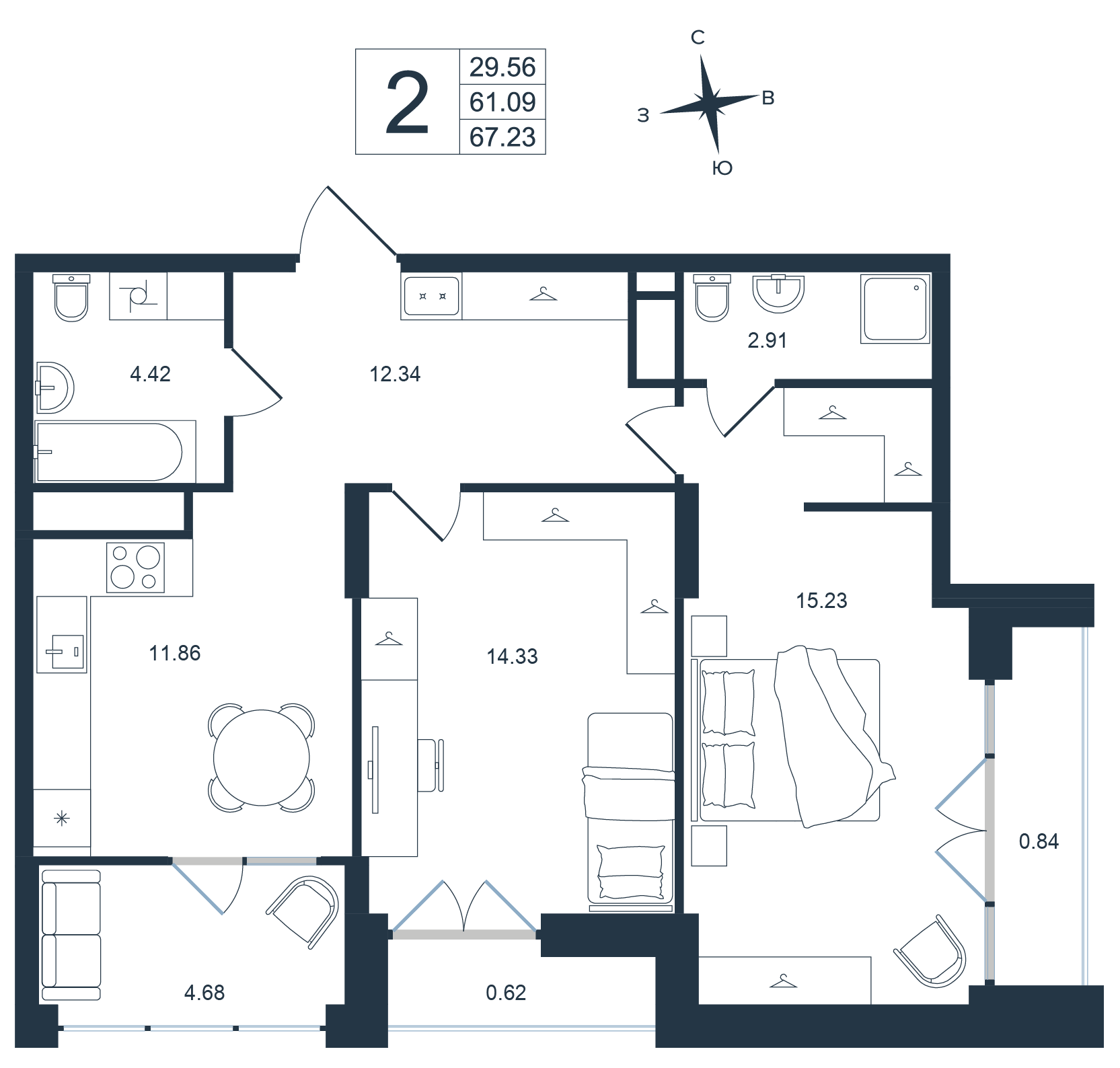 Общая площадь 44.77 м²