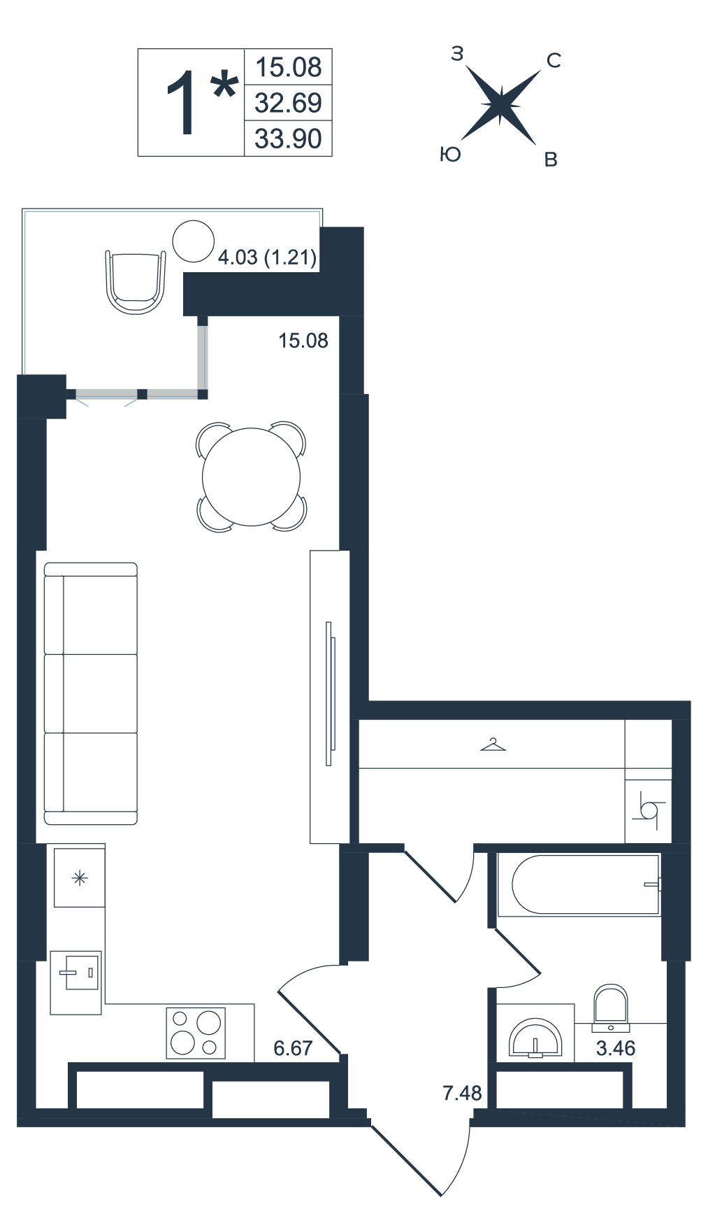 22.03 м²