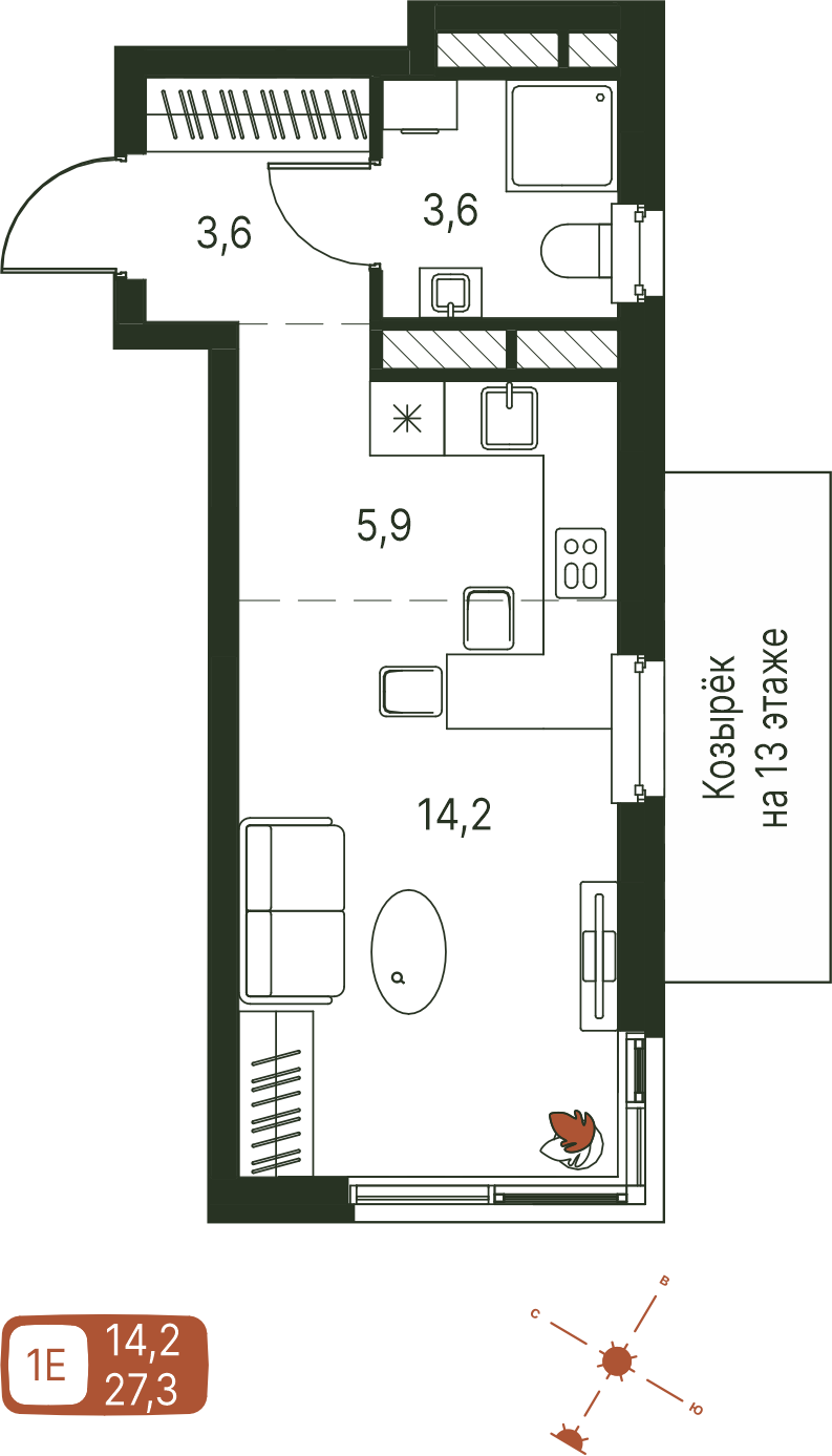 Общая площадь 27.3 м²