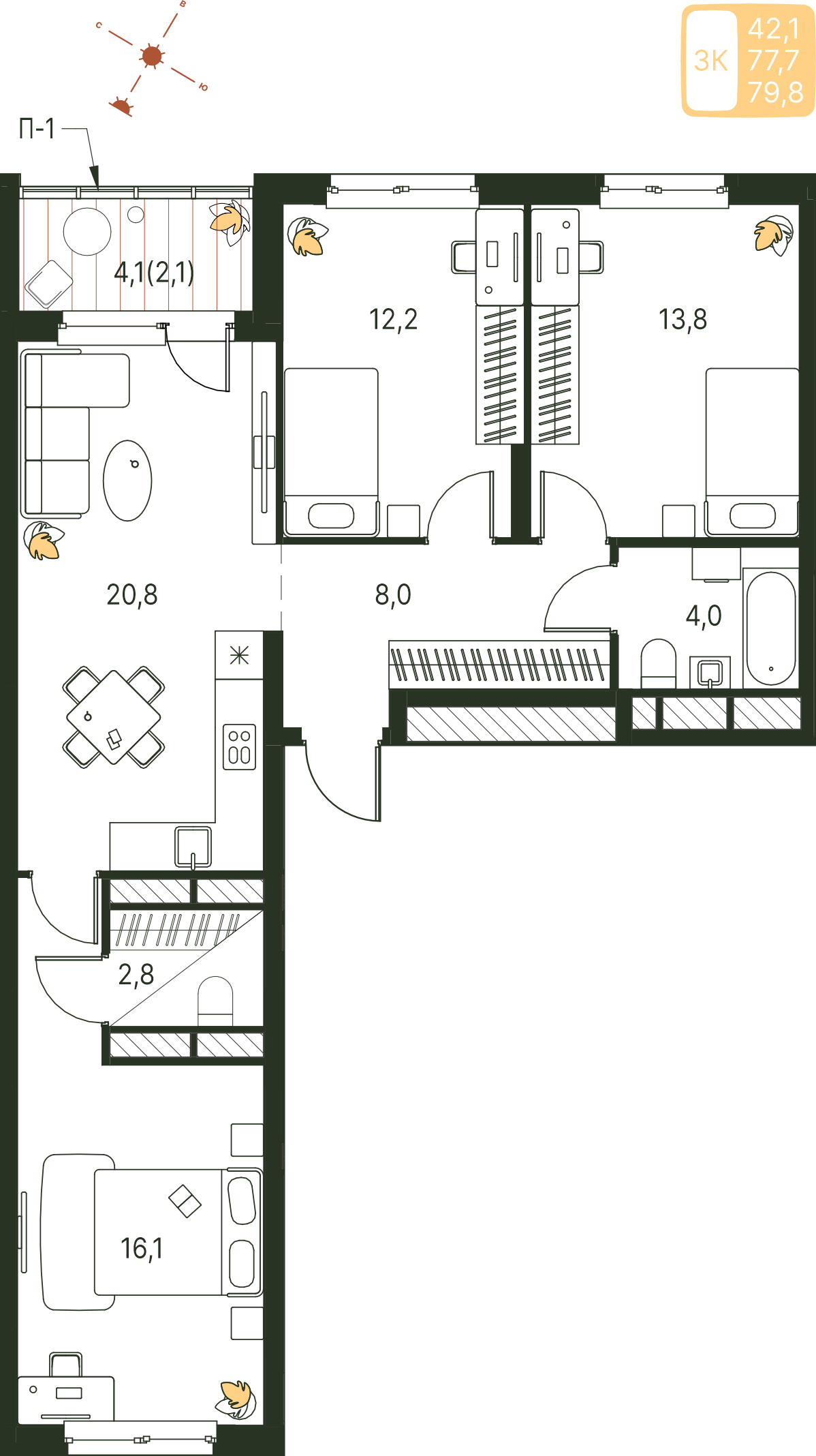 Общая площадь 79.8 м²