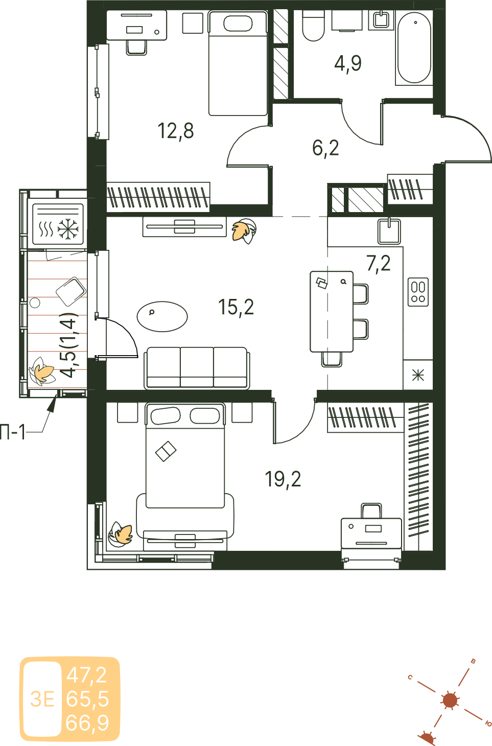 Общая площадь 66.9 м²