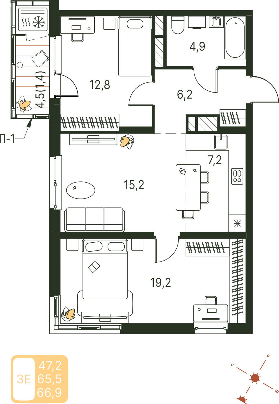 Общая площадь 66.9 м²
