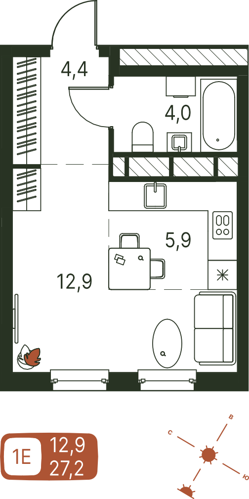 Общая площадь 27.2 м²