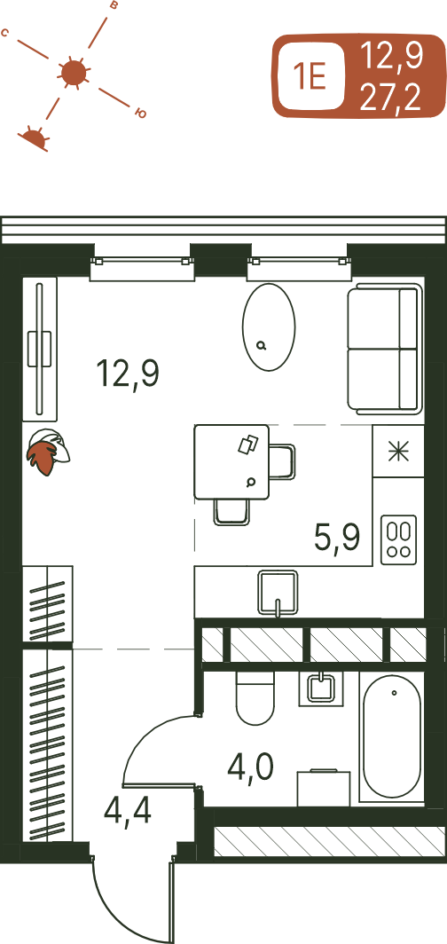 Общая площадь 27.2 м²