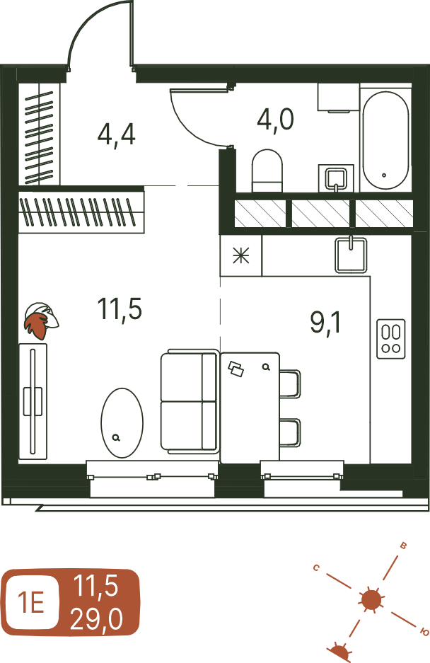 Общая площадь 29 м²