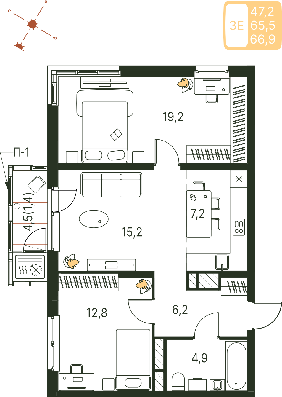 Общая площадь 66.9 м²