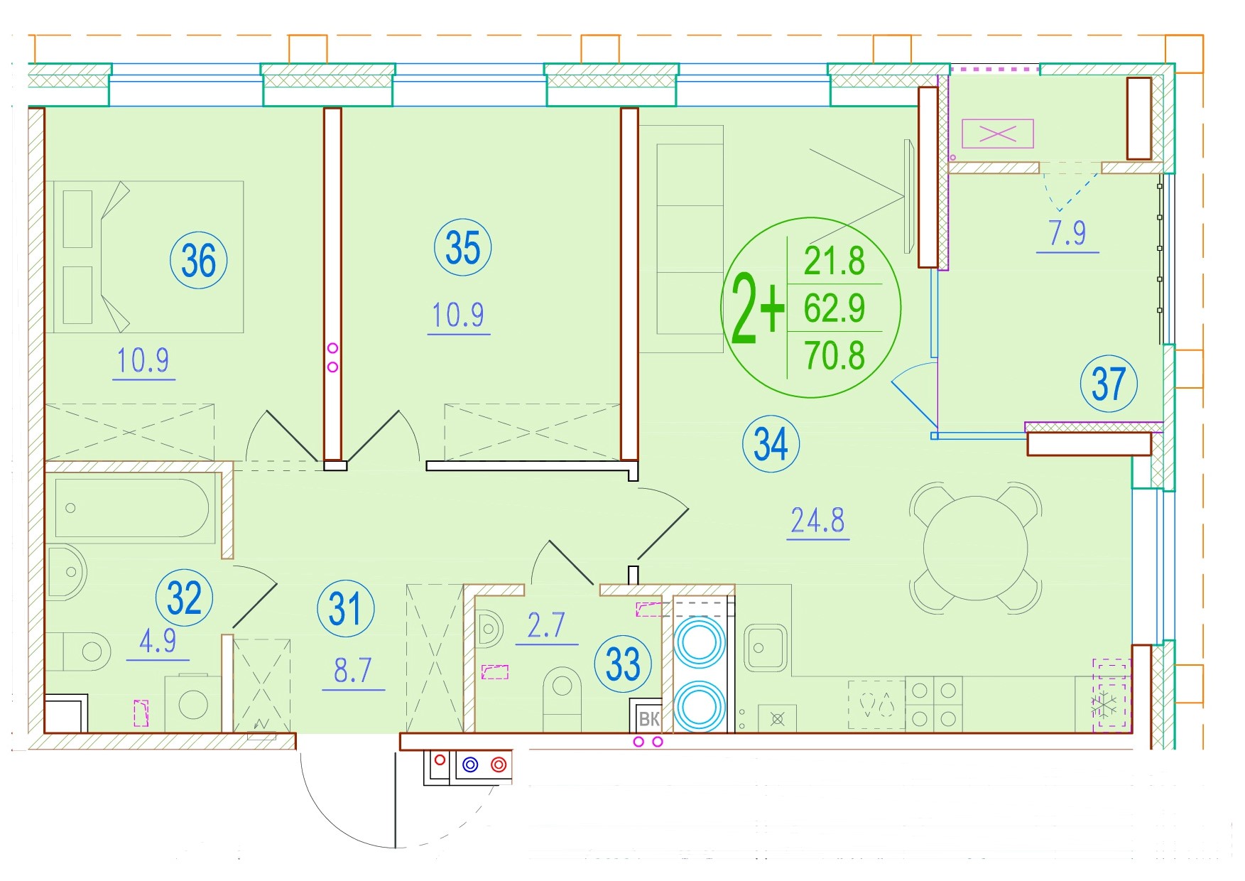 Общая площадь 39.7 м²