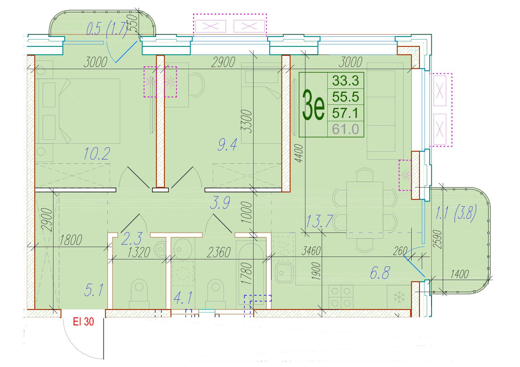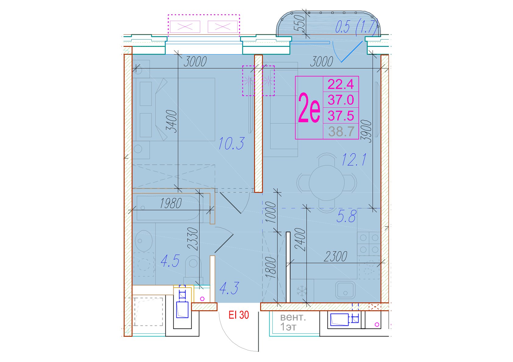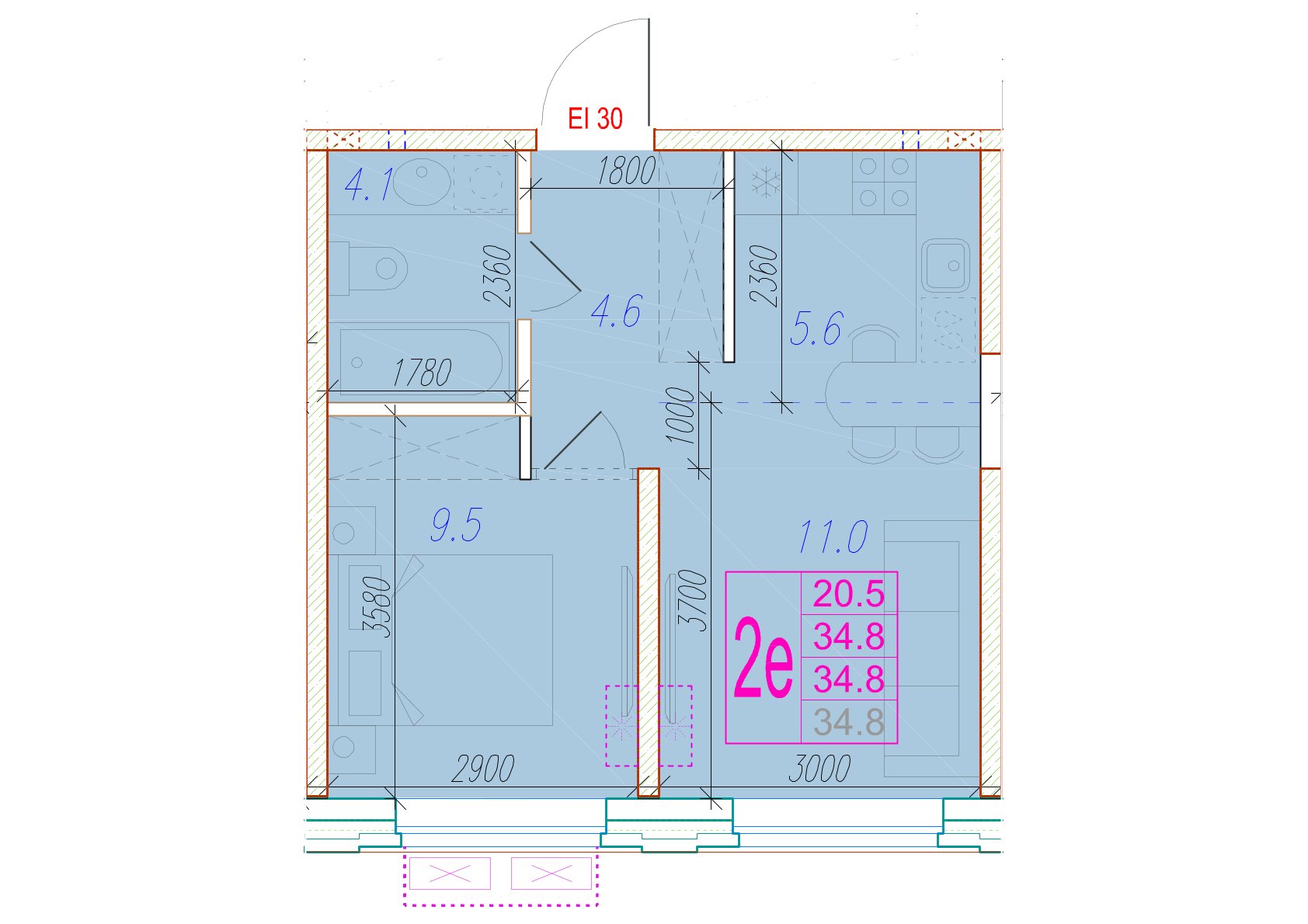 Общая площадь 28.8 м²