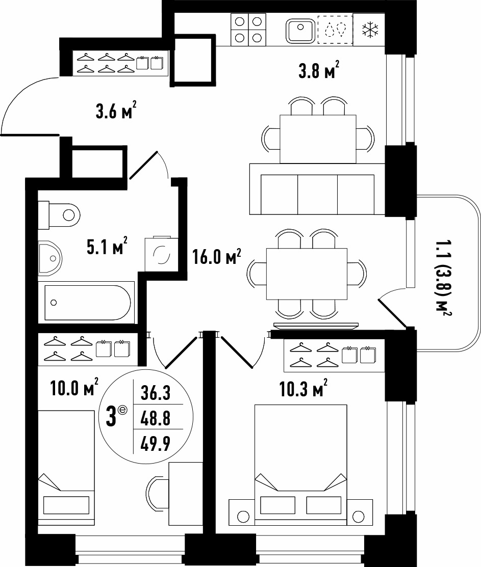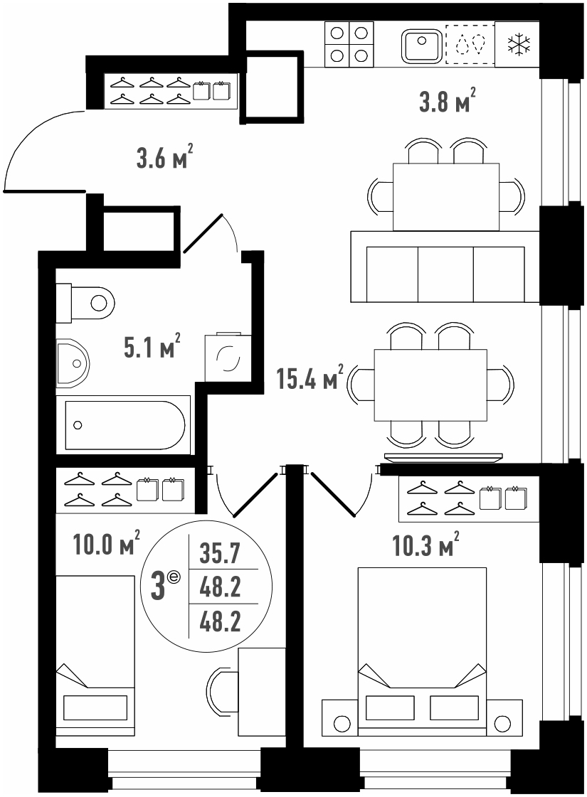 Общая площадь 46.2 м²