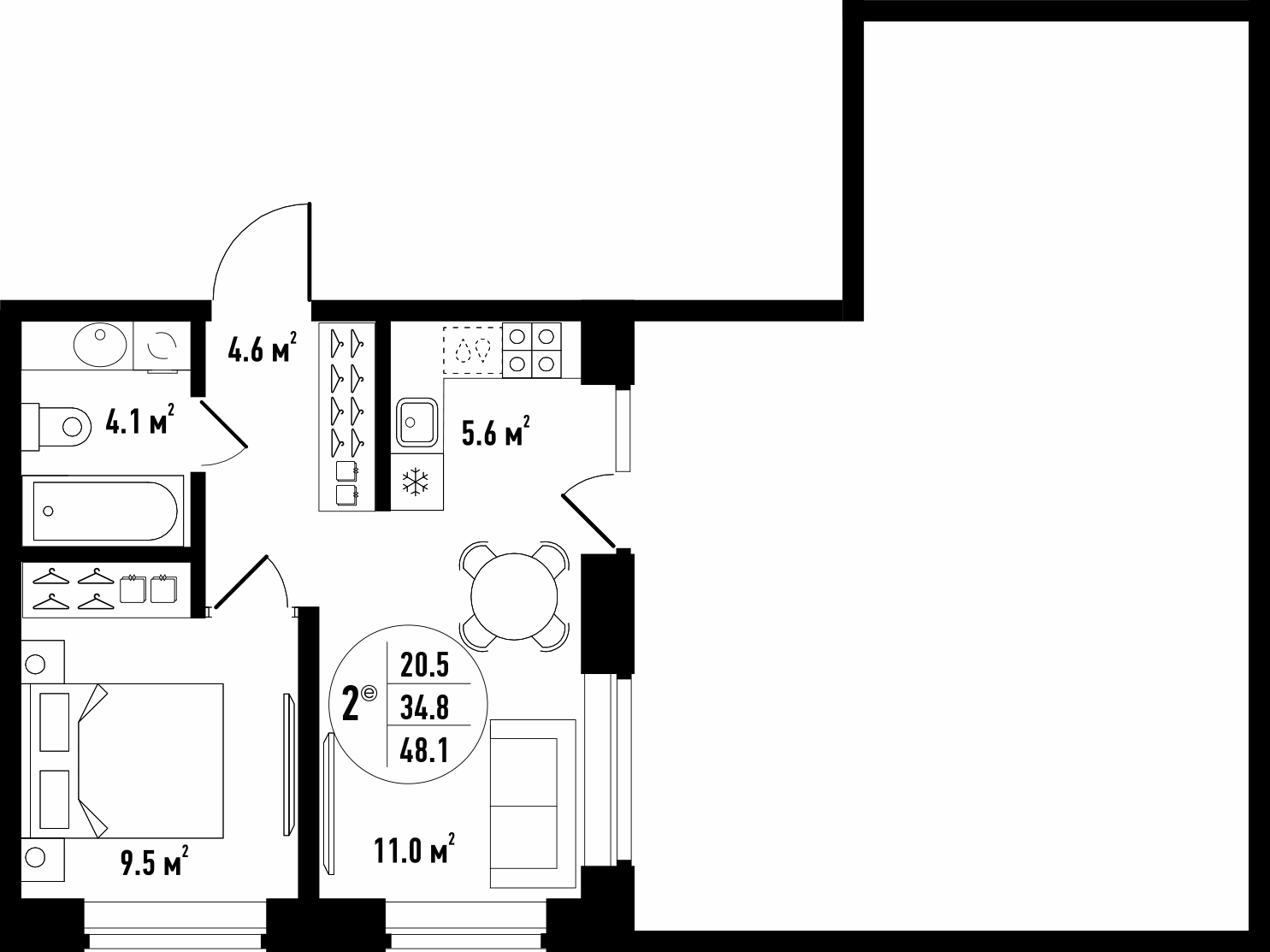 Общая площадь 48.1 м²