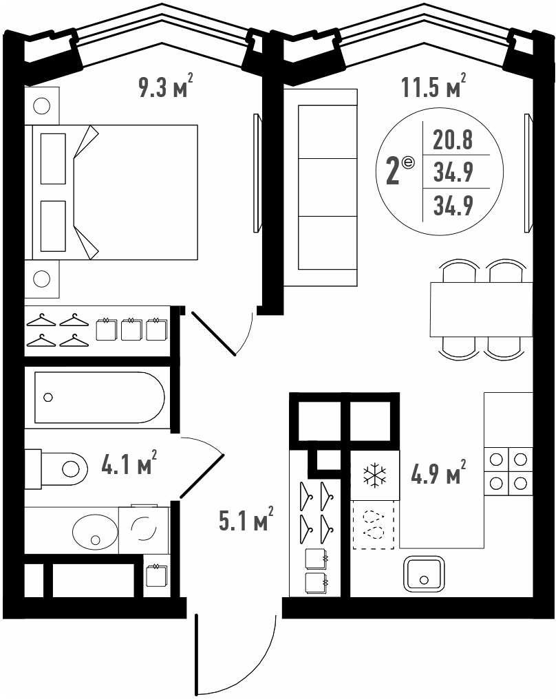 Общая площадь 34.9 м²